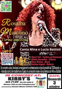 Una serata speciale, in cui le grandi canzoni di Mina e Lucio Battisti rivivono attraverso la voce intensa e vibrante di Rosalba Musolino, interprete sensibile e profonda, già semifinalista di The Voice Senior e definita dal pubblico “la cantante di emozioni”.