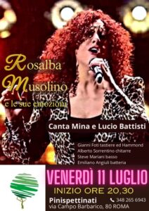 Una serata speciale, in cui le grandi canzoni di Mina e Lucio Battisti rivivono attraverso la voce intensa e vibrante di Rosalba Musolino, interprete sensibile e profonda, già semifinalista di The Voice Senior e definita dal pubblico “la cantante di emozioni”.